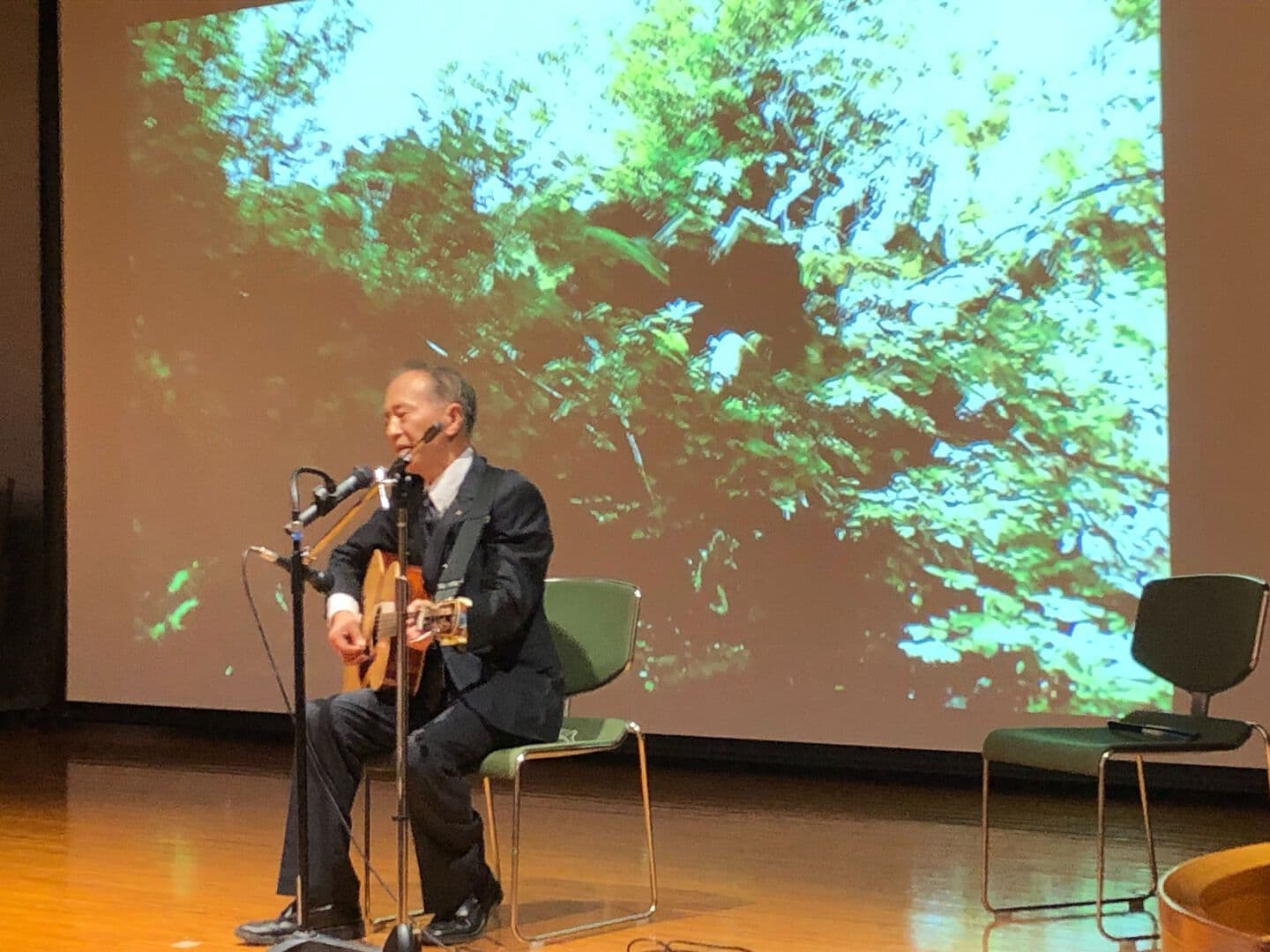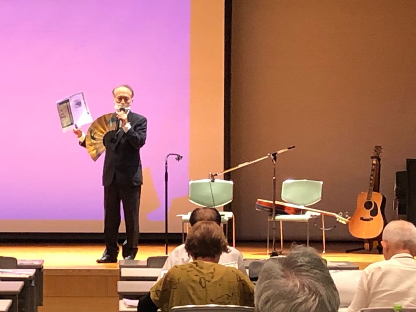 栗田元知事、酒井元福井市長のお祝いの言葉!県交通まちづくり課 田辺毅主任のヒツジサル櫓と土塀の説明に感謝。全て議案審議可決。会員拡大の意見もその後「葵城」について櫻川幸夫さんの講演!ギター抱えて登場、歴史を語る素晴らしい!余りの詳しい歴史とギターの器用さに感銘、感動。