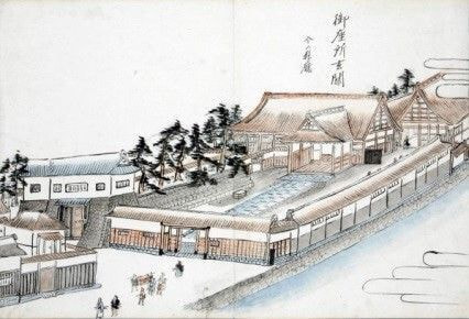 この御廊下橋や山里口御門の背後の高い石垣は天守台で、そこには福井城の天守が聳え、山里口御門から右手に延びる石垣の上には土塀が連なり、その先端には三重の坤櫓があったのです。この光景は御廊下橋詰めに設定されている